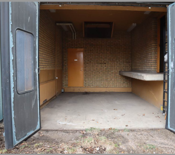 Praktiskt garage på 25 kvm med port och betonggolv.