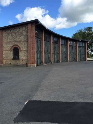 Vacker garagebyggnad från 1929 om 750 kvm uppförd i tegel, gjutjärnsfönster och stora träportar. Byggnaden hyrs ut som kallager och garage.